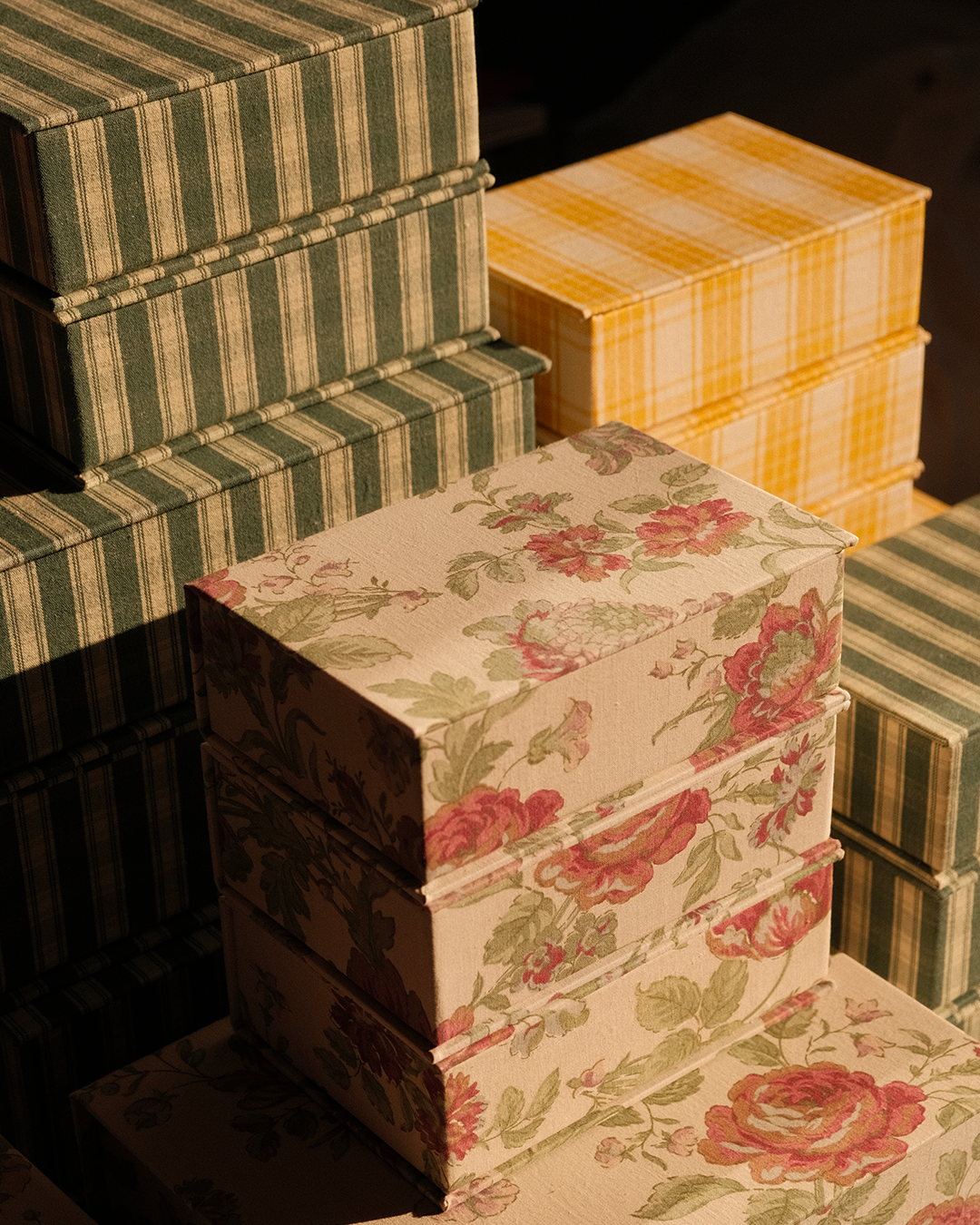 Boîte tissu - Carreaux verts et roses - Petite boîte