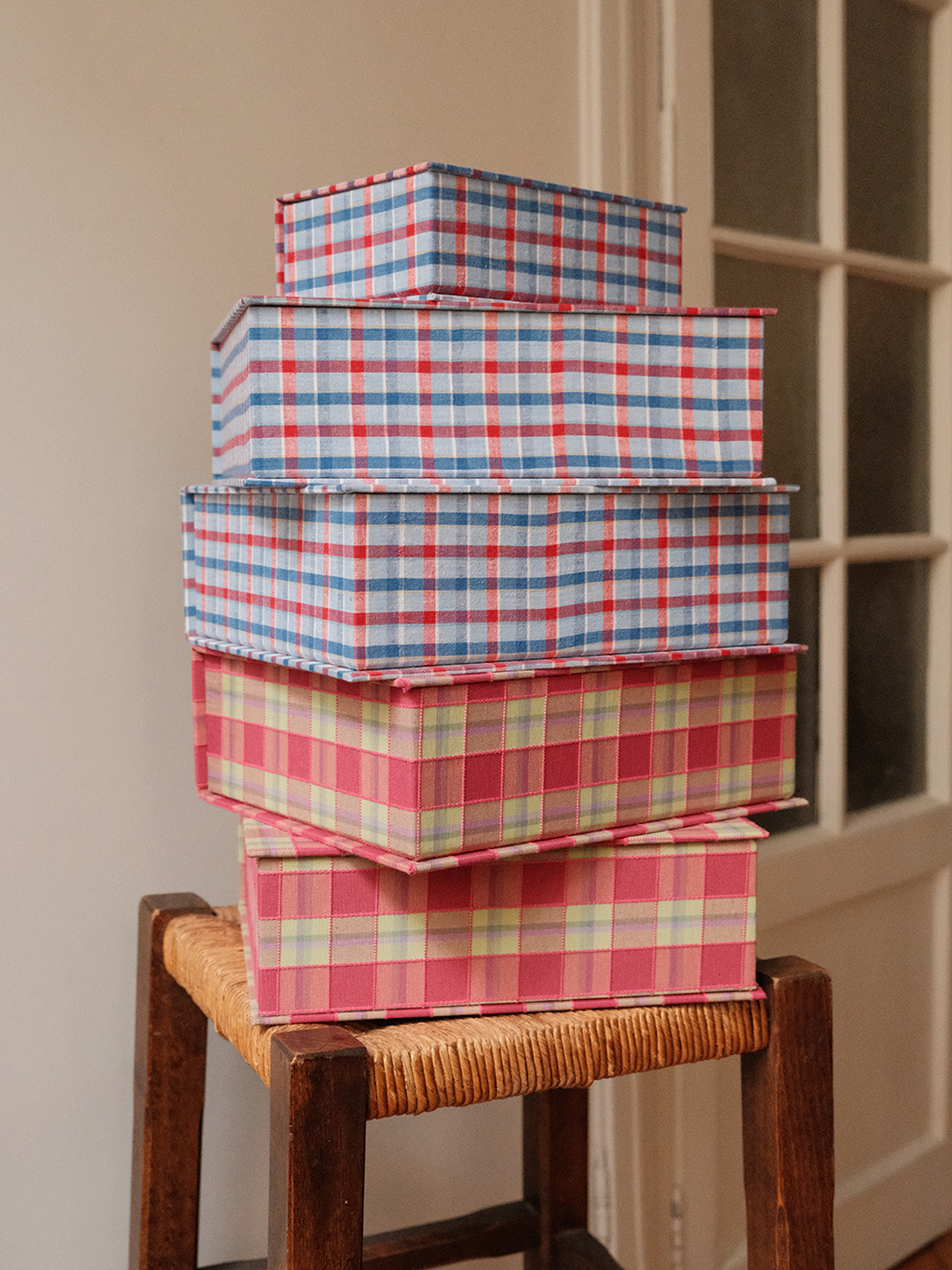 Boîte tissu - Carreaux bleu rouge