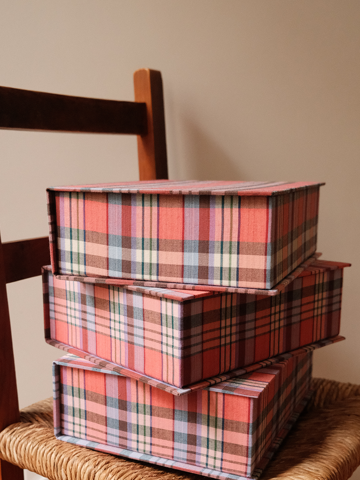 Boîte tissu - Carreaux rose multico