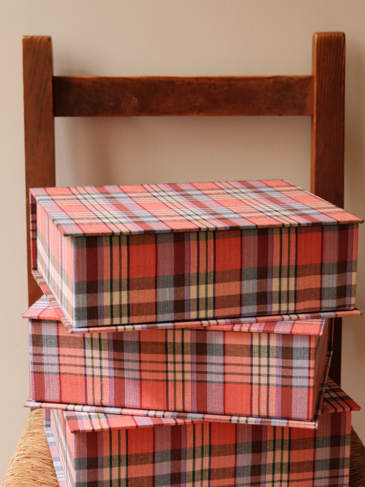 Aucun tissu n’est produit pour cette collection : chaque modèle de boîte existe dans des quantités limitées, définies par le métrage du tissu upcyclé.