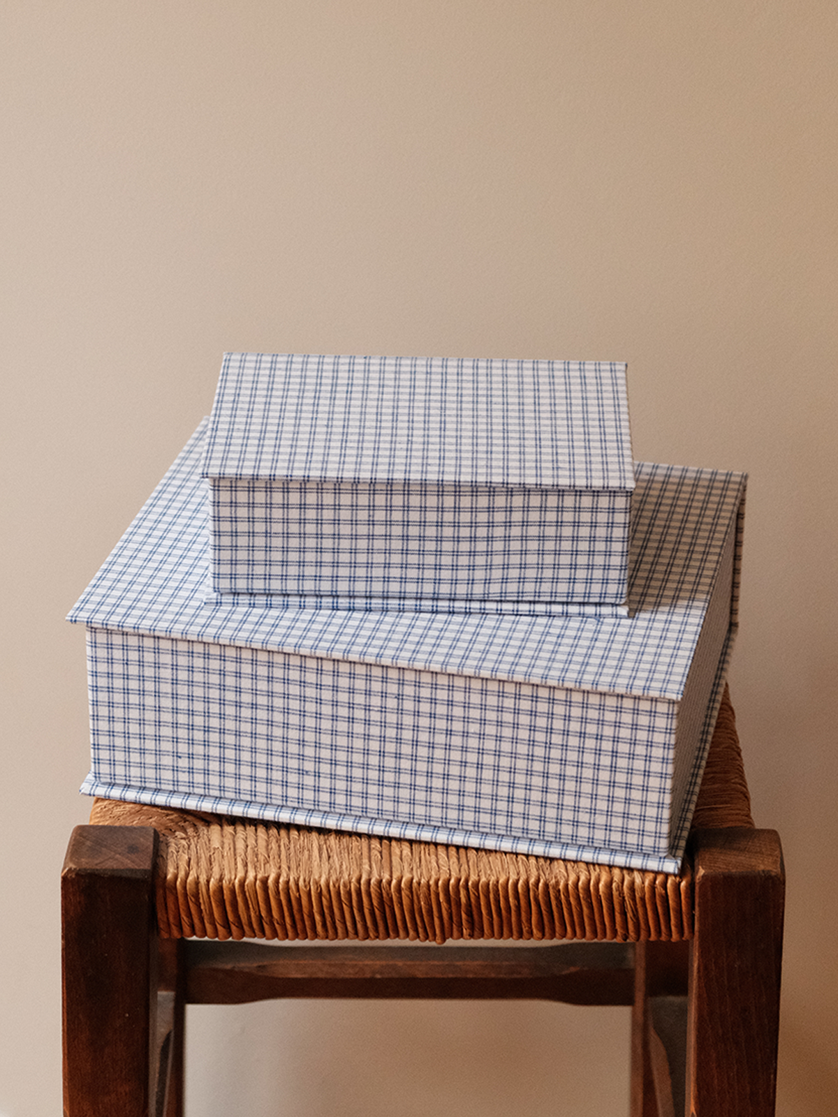 Aucun tissu n’est produit pour cette collection : chaque modèle de boîte existe dans des quantités limitées, définies par le métrage du tissu upcyclé.