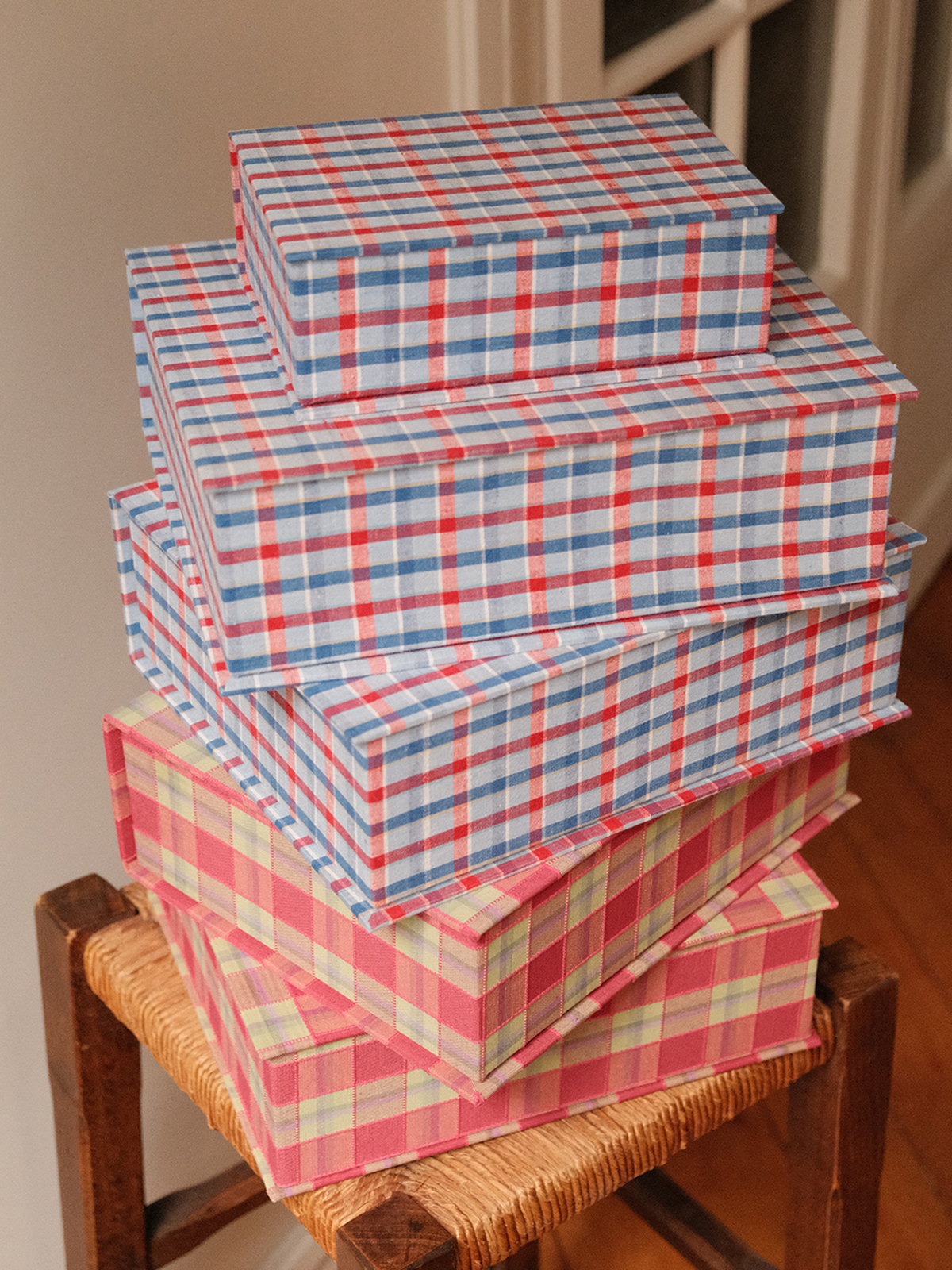 Boîte tissu - Carreaux rouge multico